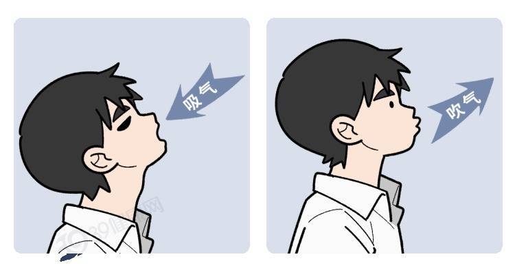 缩唇呼吸训练:轻轻闭嘴,用鼻子吸气(4秒),再用微微收拢的嘴唇慢慢呼气(4-6秒),像吹蜡烛一样。